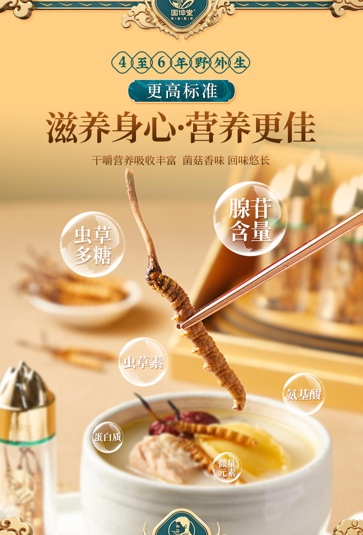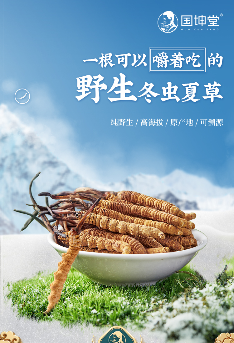 国坤堂野生冬虫夏草西藏那曲官方旗舰店虫草正品新鲜干货滋补养生